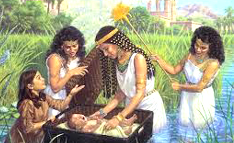 Entonces la hermana mayor de Moisés, María se acercó y dijo a la hija de Faraón: ¿Iré a llamarte una nodriza de las hebreas, para que te críe este niño? Y la hija de Faraón respondió: Ve. Entonces fue la doncella y trajo a Jocabed la madre de Moisés, a quien la hija de Faraón dijo: Críamelo, y yo te lo pagaré. Y Jocabed tomó al niño y lo crió; y cuando creció, lo trajo a la hija de Faraón, quien lo prohijó y le puso por nombre Moisés (que quiere decir sacado o salvado de las aguas), diciendo: Porque de las aguas lo saqué.